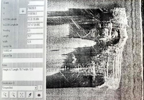 Hình ảnh từ thiết bị rà quét đáy biển cho thấy thân tàu bị đâm gần gãy đôi. Ảnh: Lực lượng chức năng cung cấp.