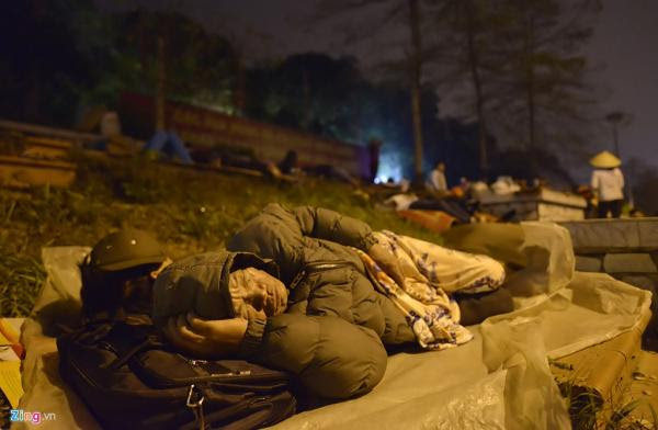 Cẩn thận hơn, nhiều người còn mang theo chiếu để nằm ngủ, gói ghém đồ đạc.