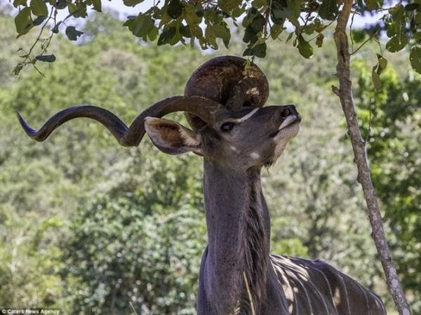 Với cặp sừng này, con linh dương rất khó tự vệ, thậm chí khi di chuyển còn vô cùng vướng víu. (Ảnh: Dailymail)