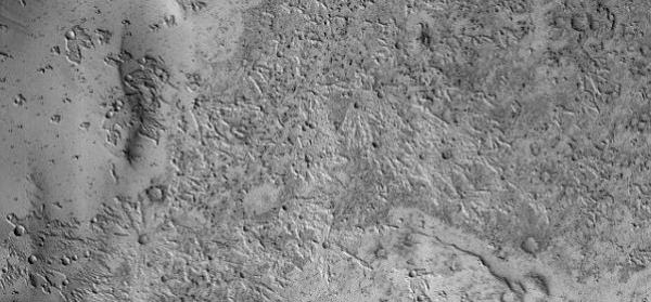 Tàu vũ trụ phát hiện ngay tại khu vực này xuất hiện chi chít hàng loạt các dấu vết, vết lằn địa chất tựa như vết chân chim. Nguồn ảnh: Dailymail.