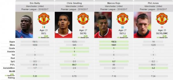 Phong độ 4 trung vệ của Man Utd ở Premier League mùa giải này.