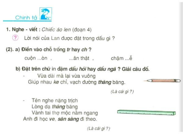 Một bài chính tả trong sách Tiếng Việt 3 tập 1