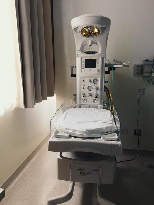 Toàn cảnh phòng sinh với các y thiết bị vây quanh.