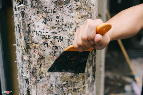 Hàng ngày, cùng với học viên lớp tiếng Anh của mình, cựu binh Mỹ Paul George Harding (69 tuổi) tỉ mỉ gỡ bỏ từng quảng cáo, rao vặt trong các ngõ nhỏ Hà Nội.