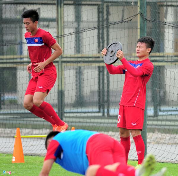Đó là các nội dung tập liên hoàn, từ cơ bụng, chống đẩy, chạy zic-zac đến đẩy tạ, gánh tạ... Quang Hải, một trong những cầu thủ được thi đấu thường xuyên nhất tại V.League, cũng phải nghiến răng vượt qua chuỗi "hành xác" này.