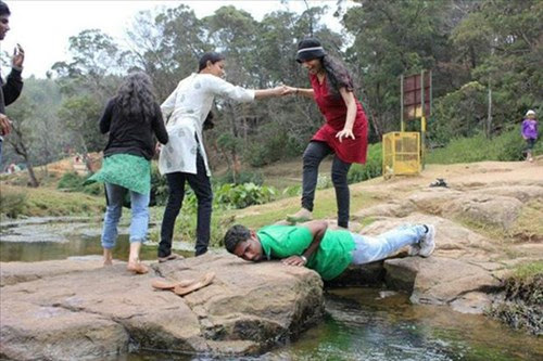 Những cô nàng không lo vấn đề chân ngắn khi có bạn thân bên cạnh.