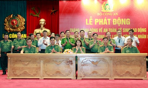 Cũng tại lễ phát động, 15 đơn vị thuộc Bộ Công an đã ký giao ước thi đua cam kết thực hiện đúng quy định về vệ sinh an toàn lao động tại cơ quan, đơn vị mình.
