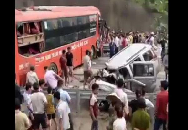 Vào thời điểm trên, một xe khách giường nằm hai tầng của nhà xe Minh Thành Phát chạy tuyến Hà Nội - Lào Cai đã va chạm rất mạnh với xe Ford 7 chỗ.