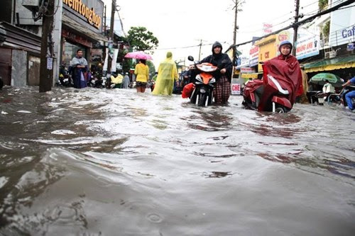 Hàng loạt xe máy chết máy giữa đường.Ghi nhận tại các tuyến đường như đường Nguyễn Xí quận Bình Thạnh, Phan Huy Ích quận Tân Bình, Dương Quảng Hàm, Lê Đức Thọ quận Gò Vấp… mưa lớn gây ngập cục bộ nhiều nơi.Đặc biệt tại tuyến đường Phan Huy Ích quận Tân Bình, có nơi nước ngập sâu gần nửa mét khiến các phương tiện lưu thông gặp nhiều khó khăn, xe máy chết máy hàng loạt khiến người dân phải hì hục đẩy xe trong dòng “nước lũ”.