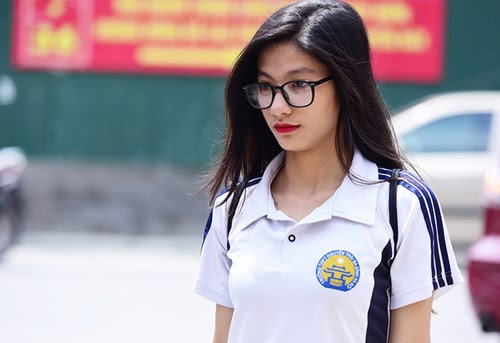 Gương mặt thanh tú, nụ cười rạng rỡ, nhiều nữ sinh thi THPT quốc gia 2017 thu hút ánh nhìn của bạn bè.