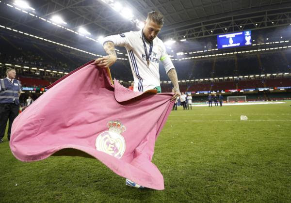 Ramos cũng trình diễn điệu múa đấu bò của các matador (võ sĩ đấu bò tót). Đây là hành động quen thuộc của trung vệ này mỗi khi Real giành danh hiệu.