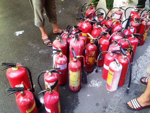 Lực lượng chữa cháy tại chỗ dùng nhiều bình mini dập lửa