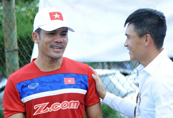 Công Vinh chào HLV thủ môn Võ Văn Hạnh... |