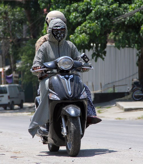 Lưu thông phương tiện dưới thời tiết nắng nóng, các vật dụng như áo tránh nắng, khăn quàng được tận dụng tối đaTại ngã ba Cửa Rào, thuộc xã Xá Lượng, huyện Tương Dương (Nghệ An), nơi được mệnh danh là “chảo lửa” Đông Dương, nhiệt độ hơn 40 độ C. Điều này đã khiến đời sống người dân đảo lộn, sản xuất nông nghiệp bị đình trệ, hoa màu, vật nuôi bị ảnh hưởng.