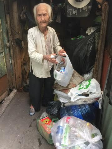 Cụ Biết quê ở Giồng Riềng (Kiên Giang) lên Sài Gòn đã lâu. Cụ có chồng và 6 con nhưng hiện nay chỉ còn mình cụ và con gái út Cẩm Vân. Ngày 2 lần, 0 giờ sáng và 5 giờ sáng cụ đi khắp xóm nhặt những thứ mà nhiều người vứt đi. Sở dĩ phải đi vào các giờ này - cụ giải thích - để nhặt được nhiều chai lọ hơn. Mình phải đi gom sớm nếu không đến sáng nhặt không lại người khác.