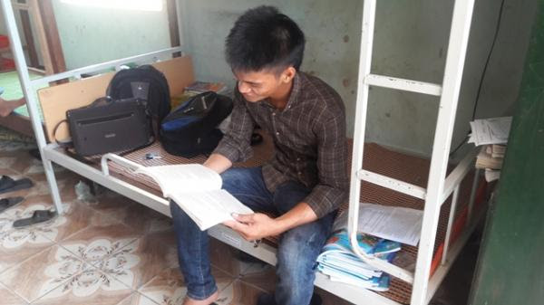 Ăn trưa xong em Nguyễn Văn Mát ôn lại kiến thức để bước vào môn thi thứ hai.