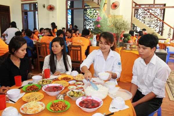 Bữa cơm chay mang nhiều ý nghĩa cho các sĩ tử: Ảnh: Công Tâm