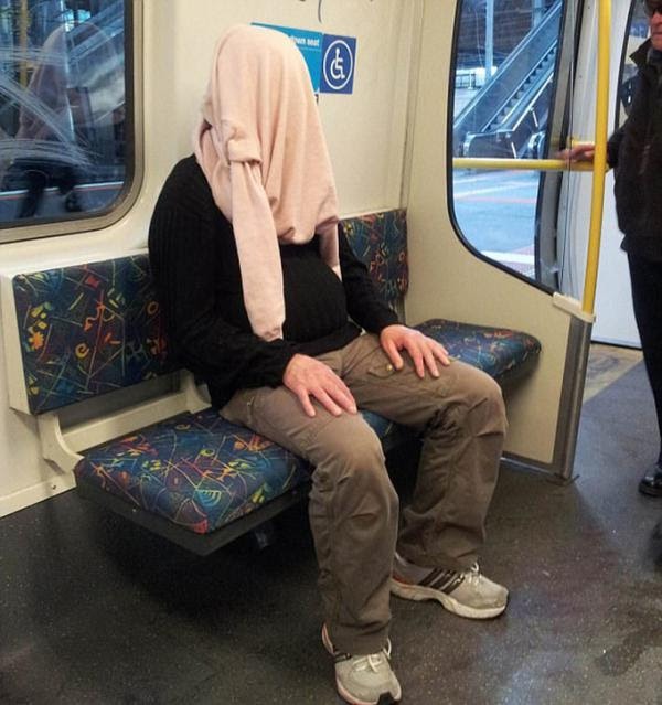 Người chụp bức ảnh tại Melbourne, Australia và đăng lên mạng cho biết: Hành khách này đã ngồi như thế trong suốt chuyến đi.