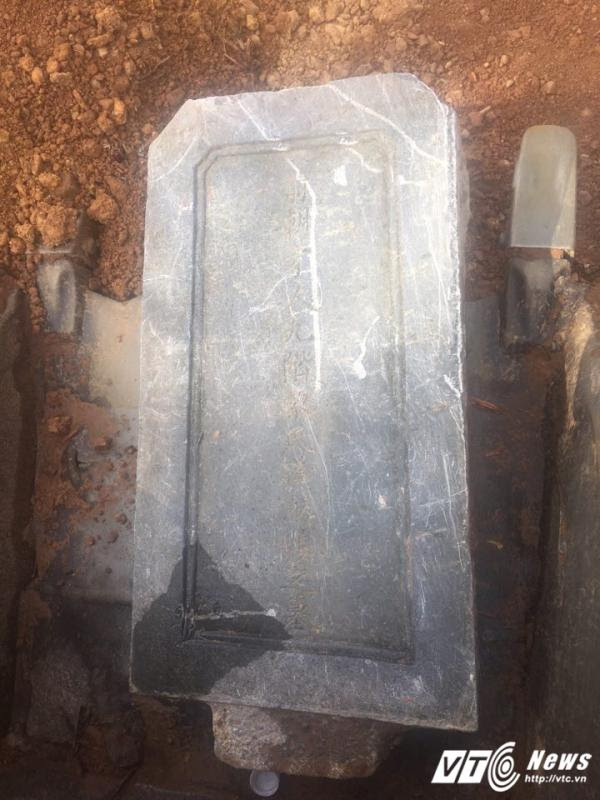 Chiều 24/6, sau hơn 2 ngày tìm kiếm, bà con trong Nguyễn Phước tộc đã tìm thấy tấm bia cổ có khắc chữ Hán nghi là bia mộ của vợ vua Tự Đức tại khu vực đang bị san phẳng làm bãi đậu xe.