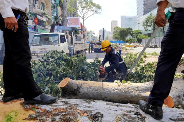 Theo Sở GTVT TP HCM, trên vỉa hè đường Lê Lợi (đoạn từ đường Phan Bội Châu đến đường Pasteur) có 28 cổ thụ phải đốn hạ, di dời.