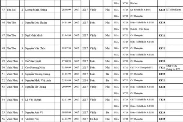 ĐH Bách khoa Hà Nội cũng công bố danh sách thí sinh thuộc diện ưu tiên xét tuyển:
