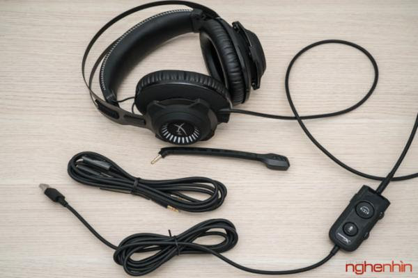 Bộ sản phẩm tai nghe Kingston HyperX Cloud Revolver S sẽ gồm có dây nối 3,5mm, sound card, mic rời và tai nghe.