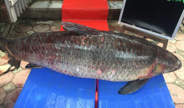 Con cá trắm đen nặng 55kg đánh bắt ở hồ Thác Bà