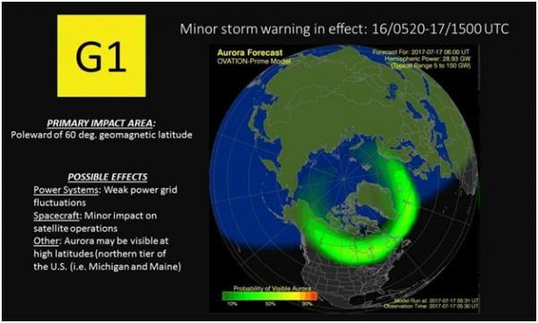 Tuy nhiên, ảnh hưởng lớn nhất của nó là sẽ tạo ra hiện tượng Bắc cực quang tuyệt đẹp. Hiện tượng cực quang có thể nhìn thấy được vào cuối tuần trước.