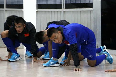 Có mặt tại sân Thống Nhất, nhưng U.22 Việt Nam không thể bước vào mặt cỏ tập vì trời mưa, BTC muốn giữ sân Thống Nhất cho tốt, tránh bị hư hại trước trận mở mànKHẢ HÒA