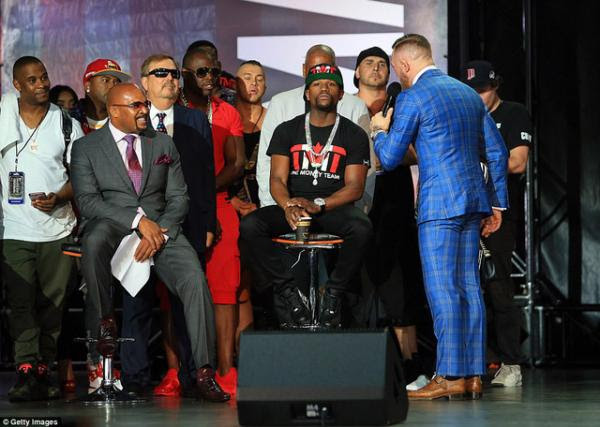 “Anh ta đang nợ tiền” - McGregor ngắt lời, đám đông ở phía dưới hét vang. Mayweather đáp trả: “Nếu anh tự tin vào bản thân như vậy thì cứ đặt cược hết gia sản vào cuộc chiến sắp tới đi. Hãy chứng minh rằng anh muốn đặt cược số tiền đó”.