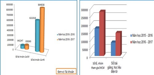 So với năm học 2015 - 2016, số bài giảng, học liệu điện tử được chia sẻ trên trang mạng Trường học kết nối tăng 60.267 sản phẩm; số tài khoản đã cấp cho giáo viên tăng 195.818 tài khoản; học sinh tăng thêm 2.426.008 tài khoản; số tổ, nhóm tham gia sinh hoạt chuyên môn tăng 105.048; 100% các sở giáo dục và đào tạo đã có Cổng thông tin điện tử để triển khai các hoạt động của Ngành.