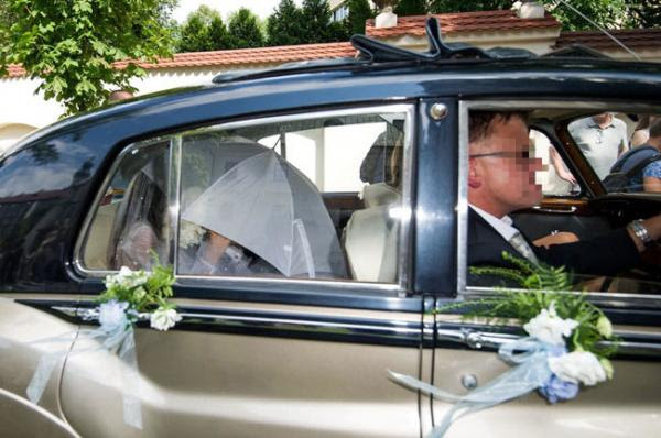 Chú rể tận tình giúp cô dâu kéo váy cưới khi xuống xe. Cặp đôi hẹn hò từ năm 2008 và Dawid Celt là bạn tập lâu năm của Radwanska. |