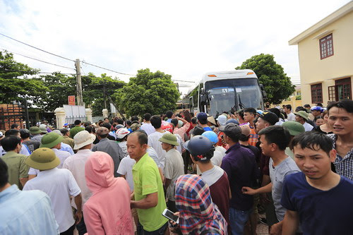 Sân Nhà văn hóa xã quá đông, nhiều người phải trèo lên cây, vắt vẻo đầu tường, đứng chật kín các tầng tòa nhà văn hóa xã để theo dõi trận đấu.