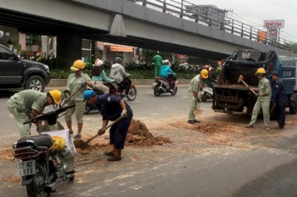 Nhận tin báo, lực lượng CSGT đã có mặt phân luồng xe cộ qua khu vực. Công ty TNHH MTV Dịch vụ công ích quận Tân Bình đã điều động người cùng phương tiện đến hiện trường dọn dẹp hiện trường.