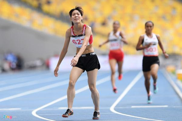 Thậm chí một nữ VĐV người Myanmar bị "bắt vòng" cũng đã ở lại phía sau. Ảnh: Hải An.