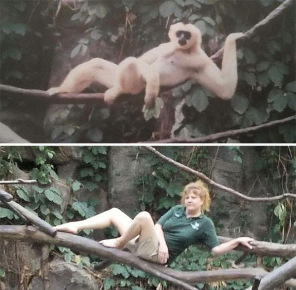 Có lẽ cô ấy nên luyện tập chăm chỉ hơn để có được "vóc" dáng uyển chuyển như con vượn trắng này.