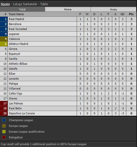 Giải vô địch quốc gia Tây Ban Nha, La Liga đã chính thức khai mạc mà không có nhiều bất ngờ xảy ra. Barcelona trong cơn khủng hoảng toàn diện cả về lực lượng lẫn hậu trường đã có khởi đầu mùa giải suôn sẻ bằng chiến thắng nhẹ nhàng 2-0 trên sân nhà Nou Camp trước Real Betis.