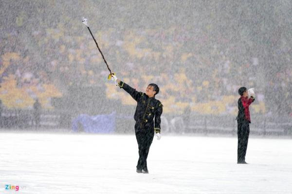 Hình ảnh chứng minh cơn mưa ở sân Bukit Jalil lớn đến mức nào.