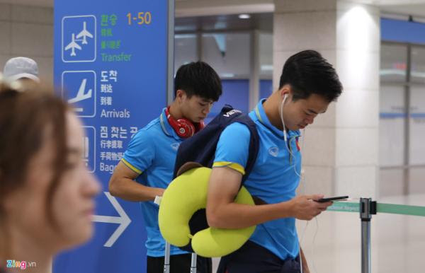 Các cầu thủ U22 Việt Nam tỏ ra rất mệt mỏi sau khi mất quá nhiều thời gian di chuyển từ Hà Nội tới Hàn Quốc sáng 1/8.