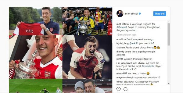 Ozil đã đăng tải thông điệp của mình trên trang Instagram cá nhân.