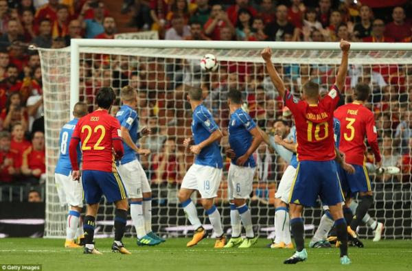 Một cú đá sút phạt chân phải khiến Buffon bay người hết cỡ nhưng đành bó tay, một cú đẩy bóng ngang rồi kết thúc bằng chân trái đẹp mắt - Isco khiến những người yêu mến Tây Ban Nha phát cuồng.