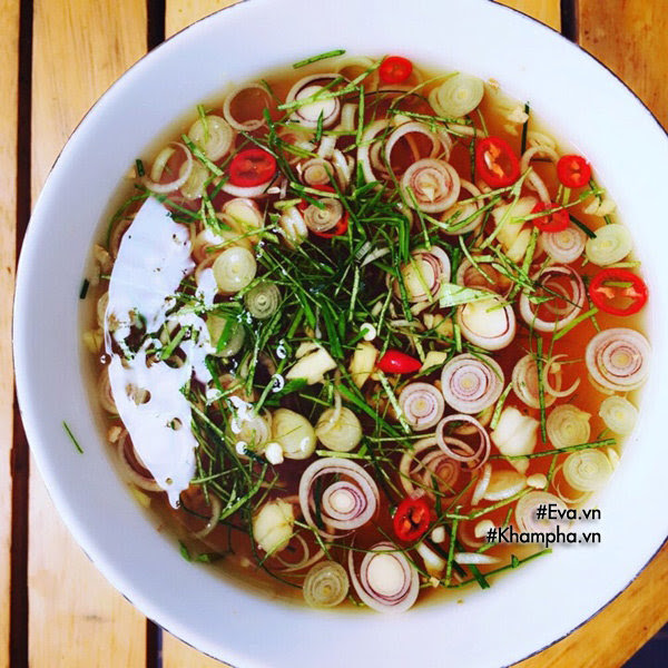 Cách làm: Cho tỏi, ớt, sả, gừng vào cối giã nhỏ. Nước mắm, đường cho vào bát hòa trước, sau đó cho nước lạnh và dấm vào hòa chung. Cuối cùng cho hết hỗn hợp tỏi ớt đã giã vào, hòa đều. Nêm lại cho vừa ăn là xong. Trước khi ăn cho lá chanh vào nhé!