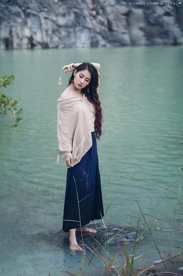 Diện bộ đồ mang đậm chất boho của một cô nàng du mục, DJ Oxy khiến người nhìn thích thú với ý tưởng chụp hình độc đáo