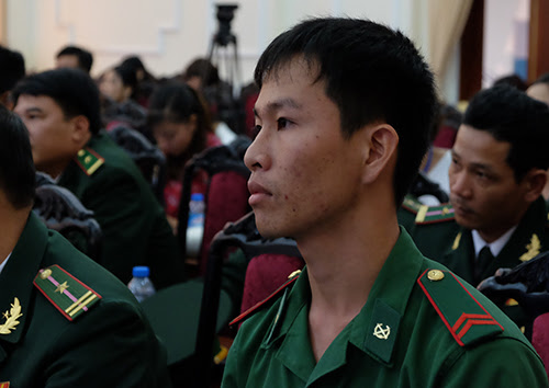 Là một trong hai cán bộ lớn tuổi nhất được vinh danh, trung tá Mai Văn Sơn (50 tuổi, Đồn Biên phòng Hải Vân, Đà Nẵng) có 26 năm dạy học xóa mù chữ cho hàng nghìn người dân.