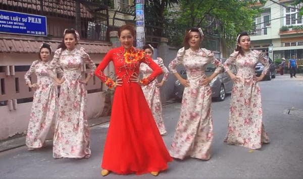 Đàn gái xinh xắn trong tà áo dài. Ảnh cắt từ clip.Từ cô giáo thành người yêu và giờ là vợ!