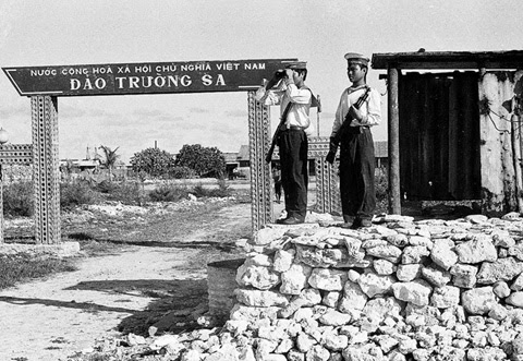 Các chiến sĩ trên đảo Trường Sa Lớn (năm 1988 còn gọi là đảo Trường Sa)