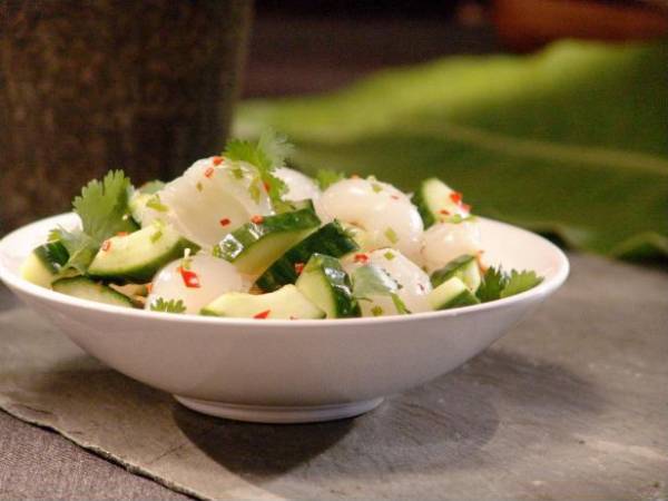 Dưa leo chứa nhiều nước nên có thể làm giảm bớt lượng đường trong vải giúp bạn có thể thoải mái thưởng thức. Ngoài ra, vị chua ngọt, giòn mềm, cay thơm của món ăn này sẽ khiến bạn ăn mãi không ngán.