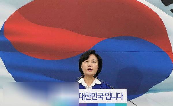 Lãnh đạo đảng Dân chủ Choo Mi-ae tại cuộc họp báo ở Seoul