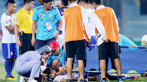 Tiền đạo Minh Tuấn chỉ phải khâu cố định vết thương rách ở trên đầu, trong khi đó, trung vệ Duy Mạnh sau khi chụp chiếu được các bác sỹ kết luận chỉ tổn thương ở thái dương.