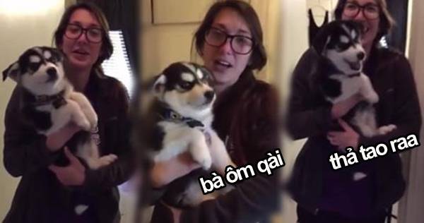 Những âm thanh kì lạ mà chú chó phát ra nghe gần như “trời ơi” “buông tao ra” khiến cô chủ có phần bối rối và bật cười trước sự đáng yêu của chú Husky.